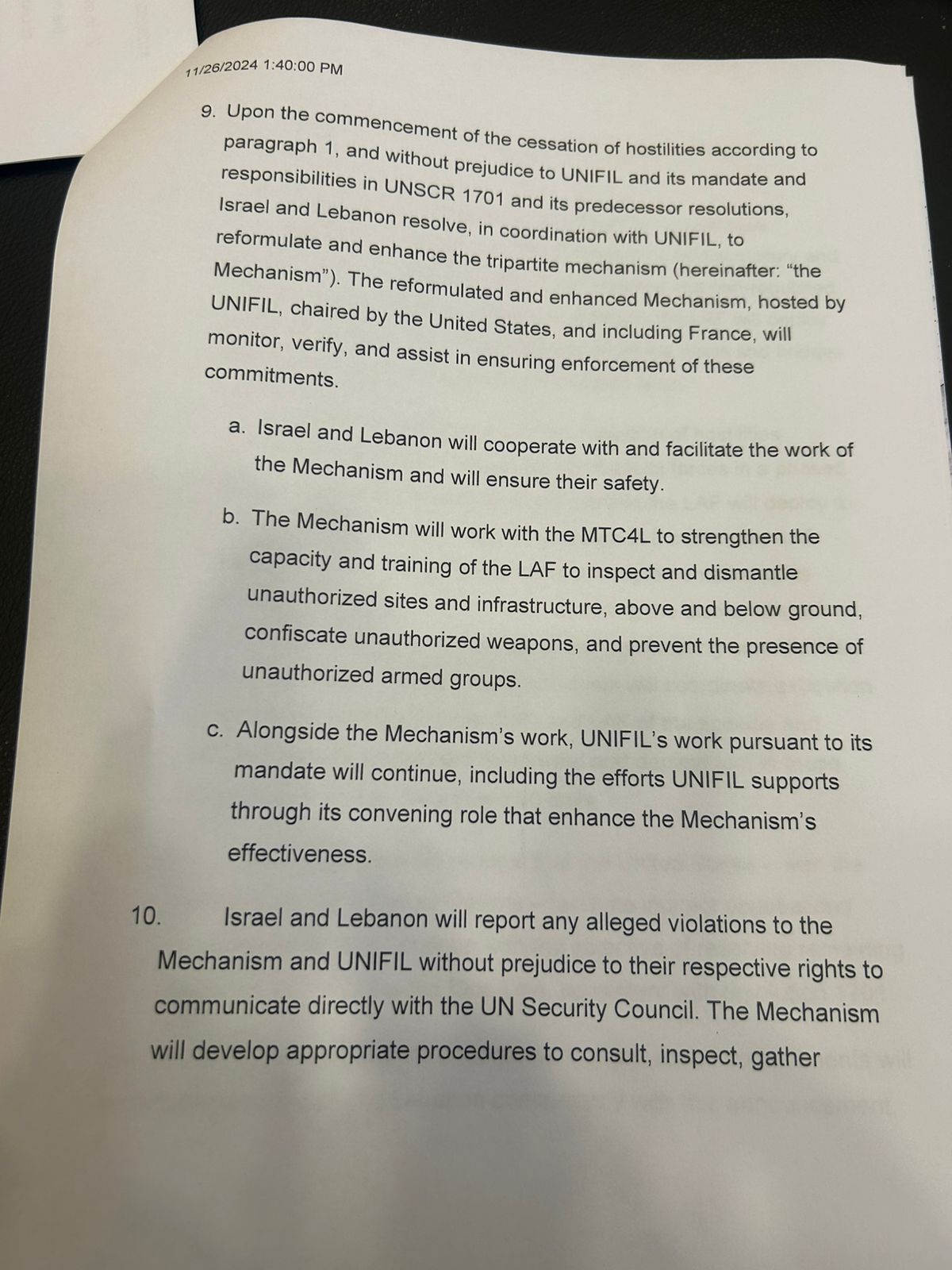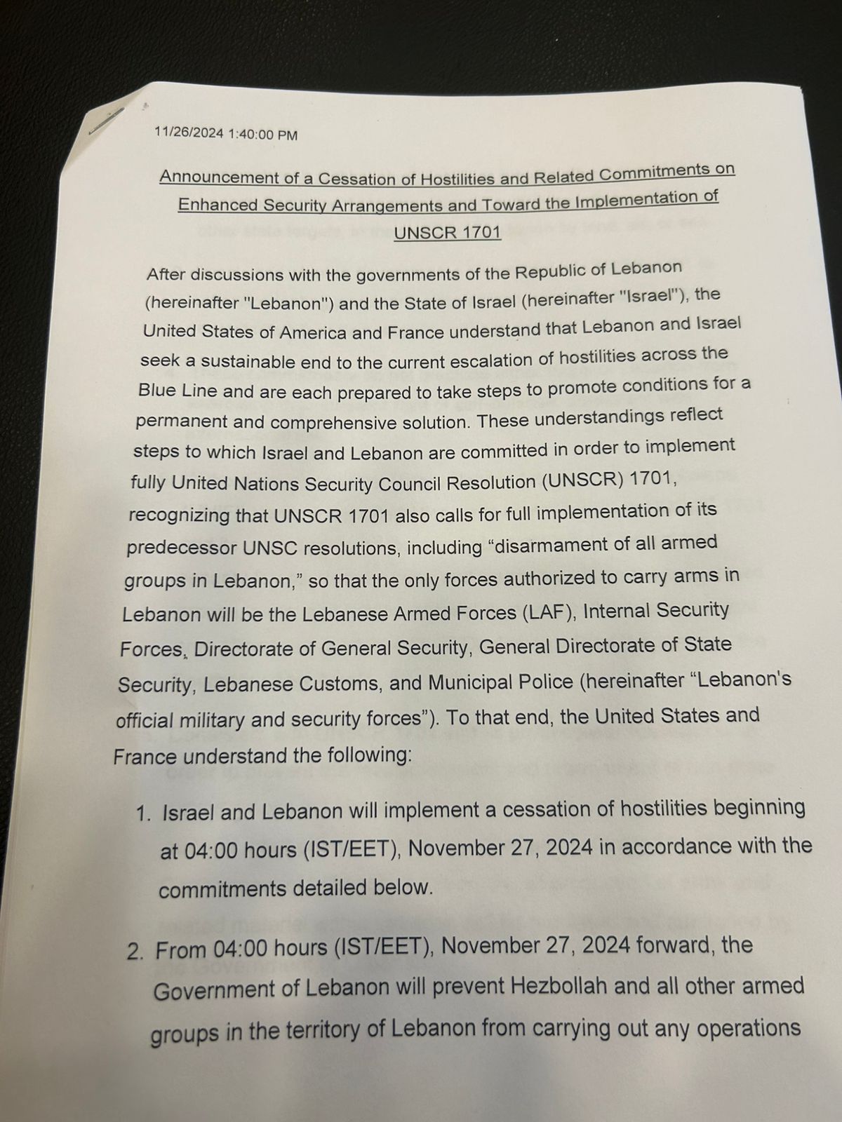نسخة اتفاق وقف إطلاق النار كما جرى توزيعها على وزراء الحكومة اللبنانية