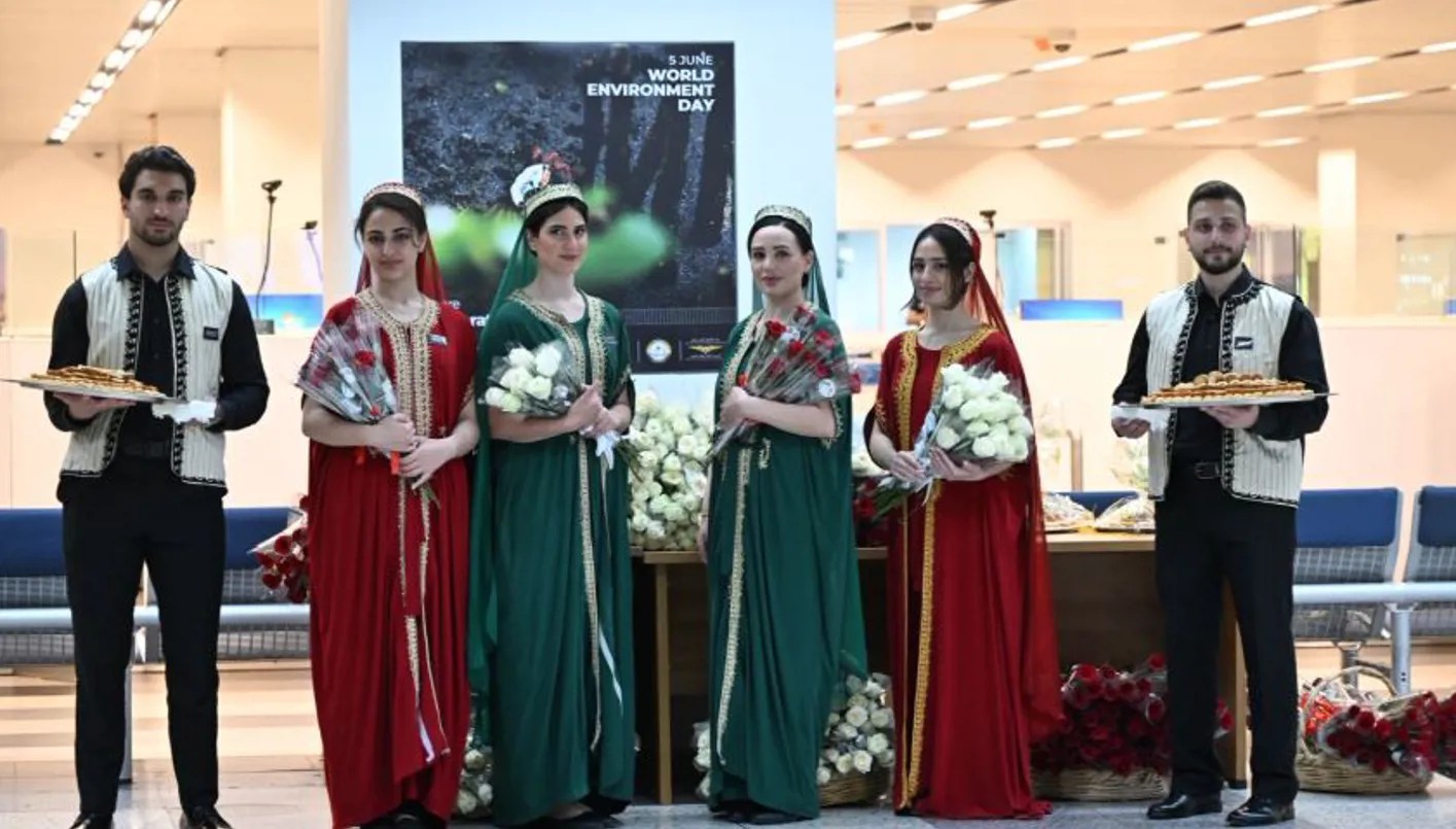 وازدانت صالة الوصول في المطار بالورود لاستقبال الطائرة وركابها، وذلك بعد سنوات من عدم هبوط الطيران الإماراتي في بيروت بسبب الأوضاع الامنية.