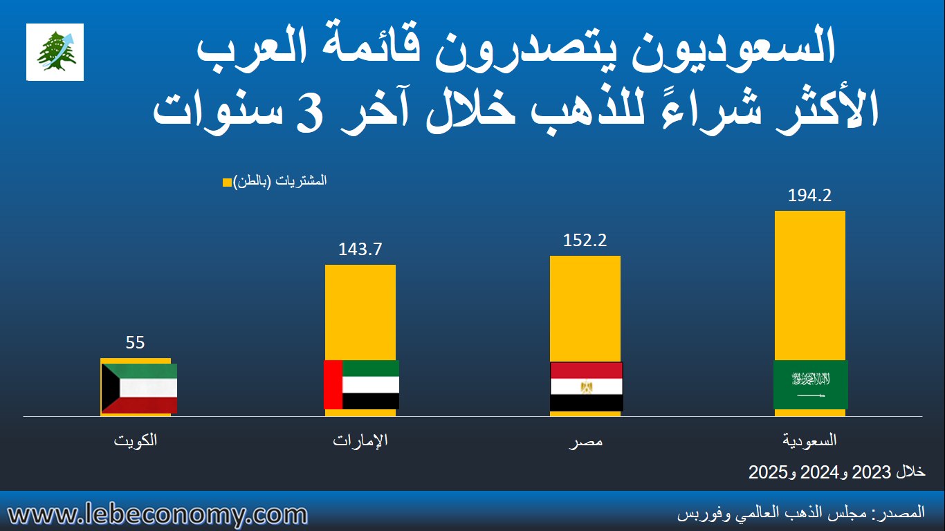 ويعرض موقعنا Leb Economy إنفوغرافاً يبين العرب الأكثر شراءً للذهب خلال آخر 3 سنوات.